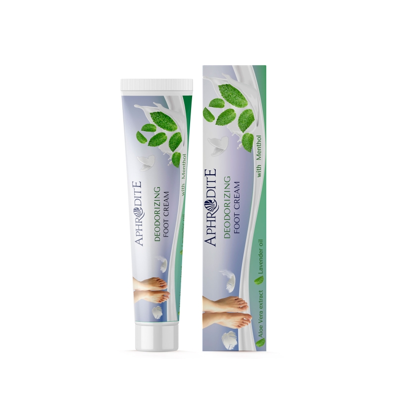 Подарете на краката си освежаваща грижа и комфорт с дезодориращия крем за крака Aphrodite с ментол.