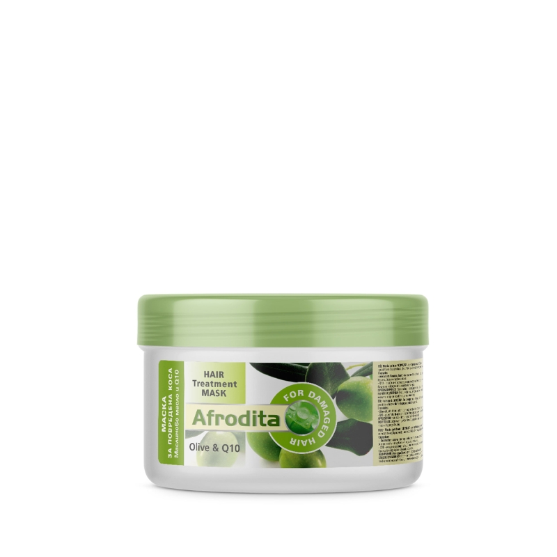 Възстановете и подхранете косата си с Afrodita маска за коса, специално създадена за увредена коса. Обогатена с маслиново масло и Q10, тази маска ще върне блясъка и здравината на косата ви.