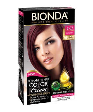 Bionda Боя за коса - 6.62 Бургунди не само променя цвета на косата ви, но и се грижи за нея. Формулата е разработена да осигури максимална защита и хидратация, като същевременно гарантира дълготраен и наситен цвят. Тази боя за коса е идеалният избор за тези, които искат да постигнат професионални резултати у дома.