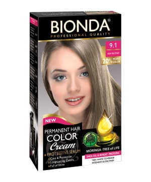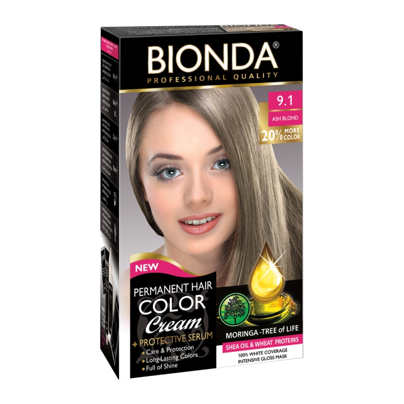 Bionda Боя за коса - 9.1 Пепелно рус е идеалният избор за тези, които искат да постигнат модерен и стилен пепеляв рус цвят, без да компрометират здравето на косата си. Подарете си професионална грижа и зашеметяващ цвят в домашни условия!