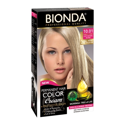 Преобразете косата си с Bionda боя за коса 10.01, за светло натурално рус цвят. Насладете се на дълготраен цвят и блясък.