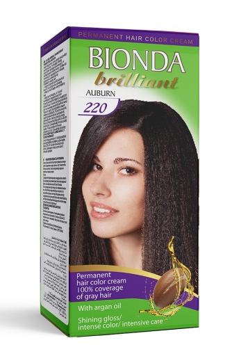 Обогатете косата си с наситен и траен цвят с BIONDA BRILLIANT боя за коса в нюанс 220 Кестеняв! Тази перманентна крем-боя за коса осигурява 100% покритие на белите коси, като същевременно придава на косата ви блясък и подхранване, благодарение на добавеното арганово масло.
