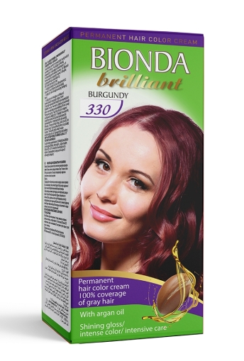 Открийте наситения и дълготраен цвят с BIONDA BRILLIANT 330 Бургунди! Тази боя за коса предлага 100% покритие на белите коси и придава блясък и жизненост на косата ви. Обогатена с арганово масло за допълнителна грижа.